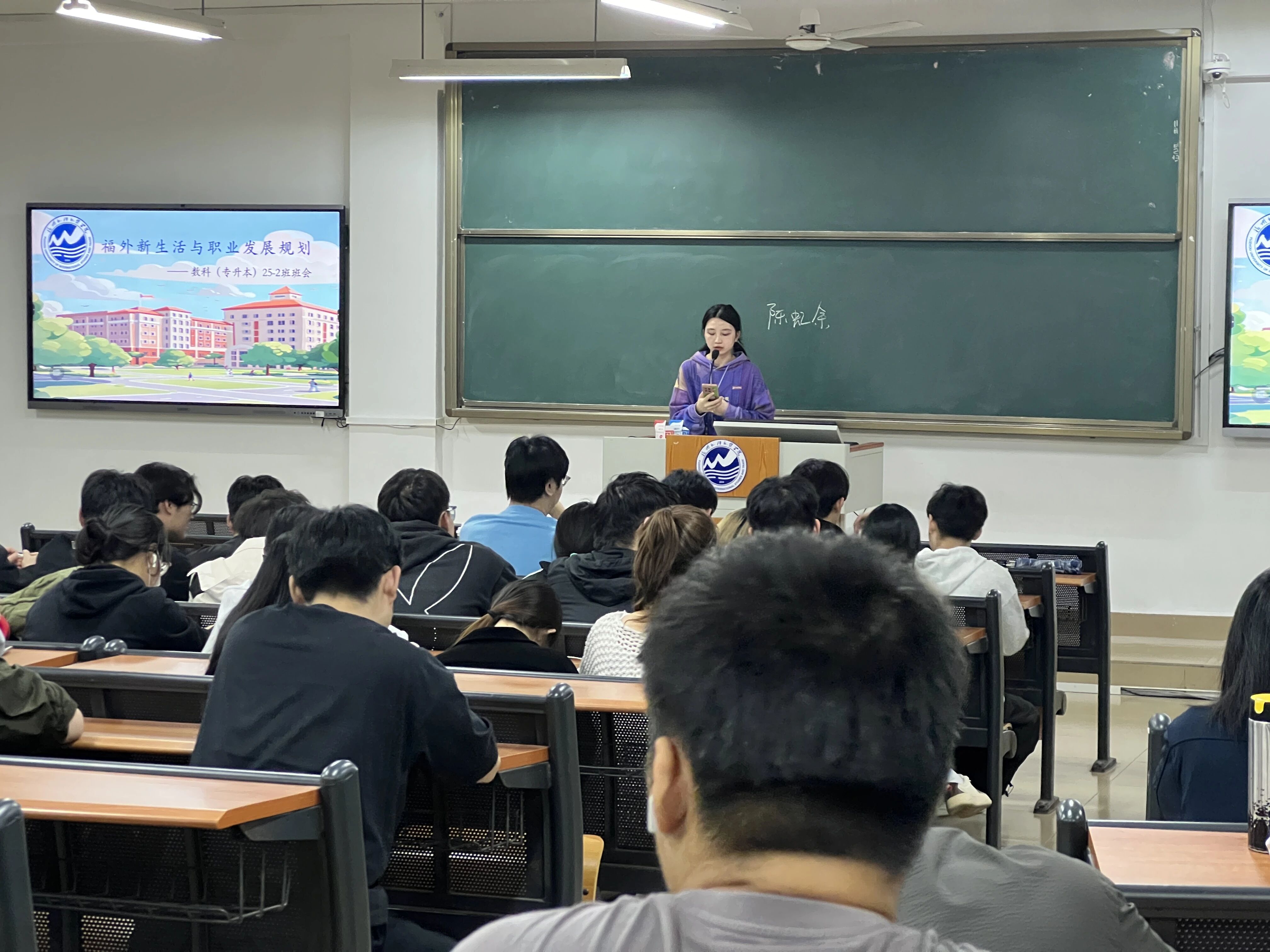 11月16日,我院数据科学与大数据技术(专升本)25-2班班导师陈虹余,在长乐校区实3104教室主持了“福外新生活与职业发展规划”主题班会。本次班会旨在帮助同学们在适应校园生活的前提下,理性审视未来方向,清晰把握不同发展路径的核心逻辑。该班全体同学悉数参加。