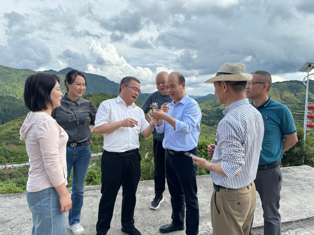 下午,吴书记在县林业局和坑底乡主要领导的陪同下,考察了我校乡村振兴综合示范基地“寿宁县铭山生态博览园有限公司”。吴书记看到1800亩荒地变成“红花油茶、高山杜鹃为主的生态博览园”,而且生机盎然、丰收在望、林旅融合跃然的画面,对我校为寿宁县特色林下经济产品培育、高山花卉开发、乡土人才培养做出的贡献表示感谢,希望双方进一步加强合作,为寿宁县乡村振兴做出更大的贡献。
